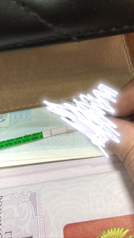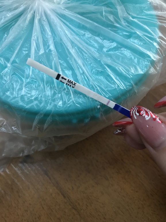 На первом есть..А вот на втором белая полоска с розовым контуром-это реагент