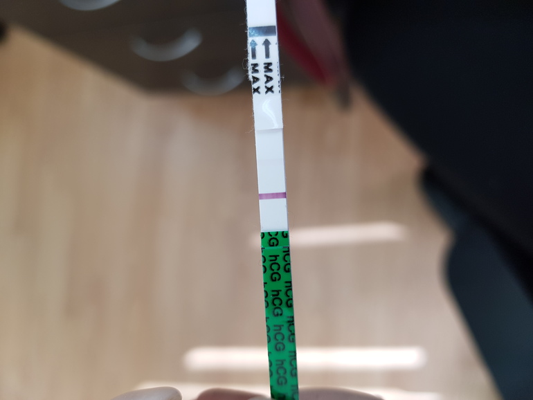 мне показал две полоски - через час пришли месячные...