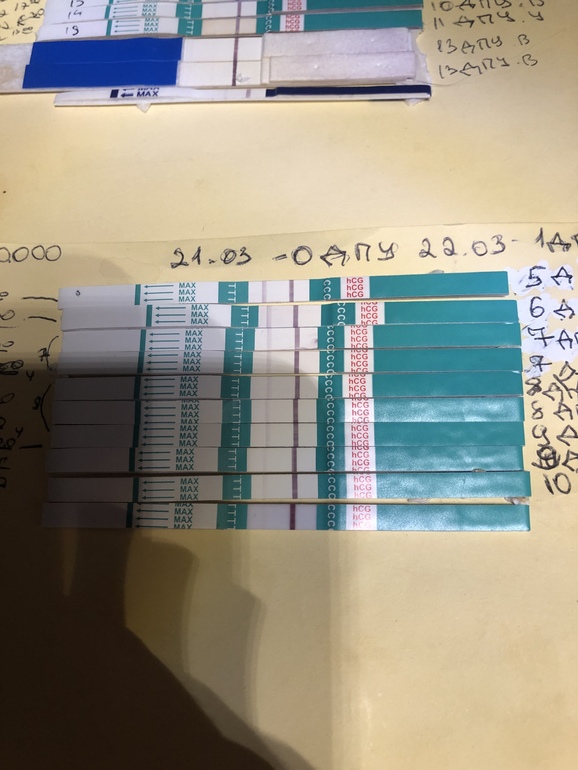 вот мои тесты нижний сегодня 8 дпо но это укол ещё. Перед ними 7 дпо утро вечер.