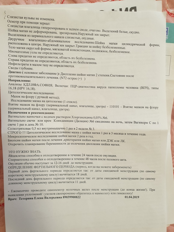 В марте пошла в больницу, сдала мазок и цитологию: повыш.лейкоциты, смешанная флора, эрозия и дислазия 2 степени...