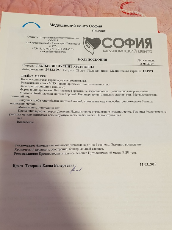 После анализов в больнице(по полюсу) решила провиться в мед.центре. сделали тогда кольпоскопию