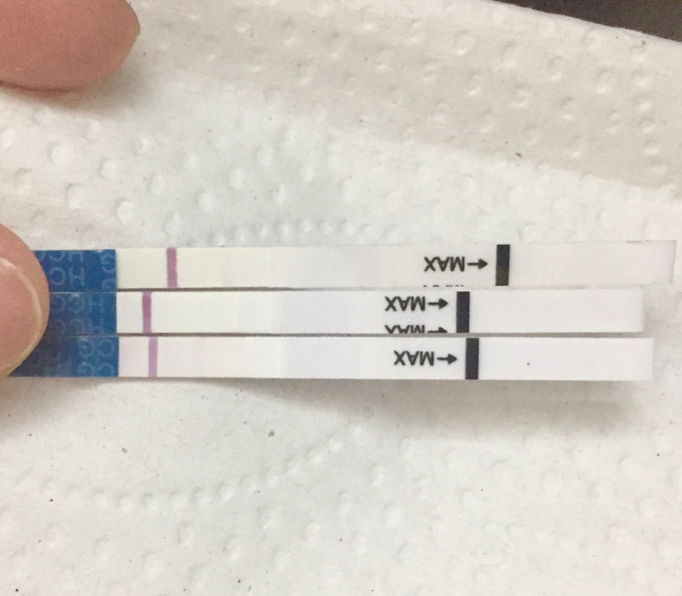 День Х наступил!У кого так было, я совсем не понимаю, что с тестами, зачем так издеваться!( началось вчера, выставила пост, тест с утра выдал видную РОЗОВУЮ полоску. Вечером ели вытерпив 2 часа делаю тест и он пуст, чист как слеза.... расстройство не передать словами... хотя уже давно привыкла. Сегодня приехала на работу, дорога занимает где то 1,40 , делаю тест после чашки кофе и воды, не на утреннем так как не успела и что вижу, полоску, опять же РОЗОВУЮ, но бледнее чем вчера! Сижу в шоке, что за исчезающие и появляющиеся полоски? Брак теста? Вчера ещё ниже живота, прям по середине была боль, словно там ложкой выковыривают кто то изнутри. Тесты, верхний вчера, в середине вечером, нижний сегодня. Тесты делаю по инструкции, не передерживаю, не макаю выше отметки и тд.