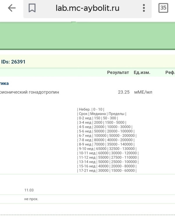 На 12 ДПО в первую Б - 17, во вторую - 33, в третью тесты заполосатились с ХГЧ в крови 7 ед, какой ДПО неизвестно.