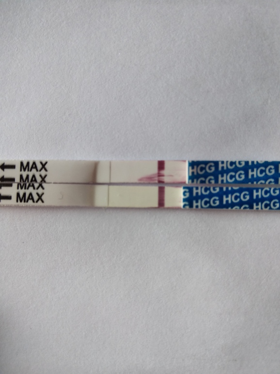 Ждем дня Х (Признаки беременности / Тесты)25-ый ДЦ (овуляцию не отслеживала, ПА был на 14-ый ДЦ). Тест Фрау, и я вижу вторую полоску, но смущает вся эта розовая грязь, и на втором тесте из той же пачки (делала утром) ничего не было.