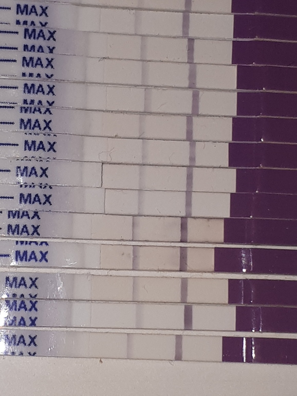 Какой фирмы тест? Мне овуплан четко показывал, тестовая конкретно ярче контрольной была. По вашим тестам я бы предположила четвёртый снизу положительным)