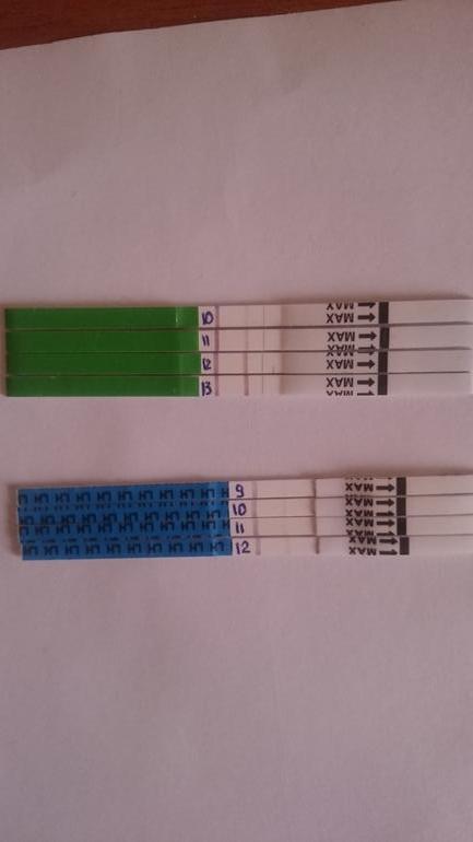 А что за марки тестов? Синие такие бледные, а зелёные очень яркие 🤔 если завтра начнет бледнеть, я так понимаю, что выброс лг у вас был именно сегодня, значит О только должна быть завтра или послезавтра