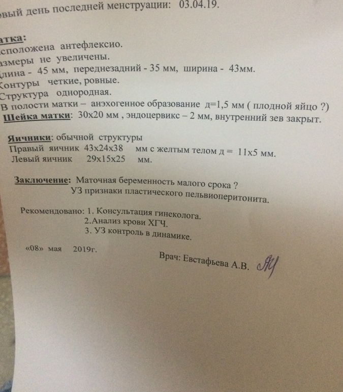 У меня была плохая история...Первая и такая долгожданная для меня беременность. Узнала, что беременная фактически сразу, пошла к врачу с непонятными ощущениями, подумала, что застудилась, посмотрели на УЗИ, все в норме, но что-то вроде есть, сделала тест - две полоски. Была в отпуске уехала отдыхать, в отпуске много ходили, на обратном пути в поезде появились розовые выделения, приехала сразу на УЗИ вечером, там гематометра, Утром к врачу, УЗИ - сердечко бьется, как я была счастлива, назначили утрожестан и покой, так как плод медленно развивался и ХГЧ был низкий.На другой день начало кровить, я к врачу, положили на сохранение. Неделю сохраняли козявочку, ХГЧ все время был низкий. И вот в понедельник берут утром кровь и в 11.00 прилетает лечащий врач и срочно к главному врачу меня тащит. Там я слышу, что ХГЧ падает, надо купить какой-то препарат, я так поняла прогестерон в уколах и срочно его колоть. Я к своему врачу бегом, она на другом этаже в этой больнице. Она срочно меня на УЗИ, а там все...сердце не бьется..Малышку по моим срокам было 7-8 недель, по развитию 5-6 недель. Дальше как в тумане, слезы, медикаментозный аборт. Грешила и на свои походы в отпуске, что много ходила пешком, и на неопытность врачей. Врач предложила сдать абортус на анализ, поймала свою козявочку и сдала на кариотип. У этого несмышленыша было 69 хромосом, триплоид. К моей истерике добавился еще и шок. Через некоторое время успокоилась, поговорила с генетиками и врачами, сказали природа сама знает когда оставить плод. Теперь планирую, правда год уже без толку, но я все надеюсь на свое счастье. И вы держитесь, дай бог вам здорового и красивого малышка)