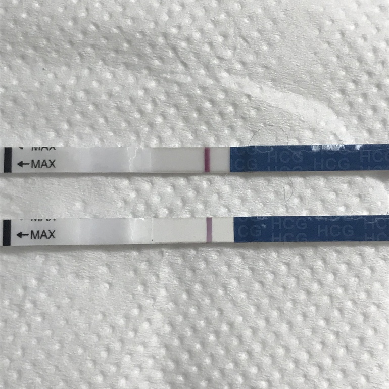 Явная вторая полоска, вживую видно ещё лучше!до М 5 дней. В позапрошлом цикле была БХБ, но там тест показал только за 1 день до М, такую слабую полоску.