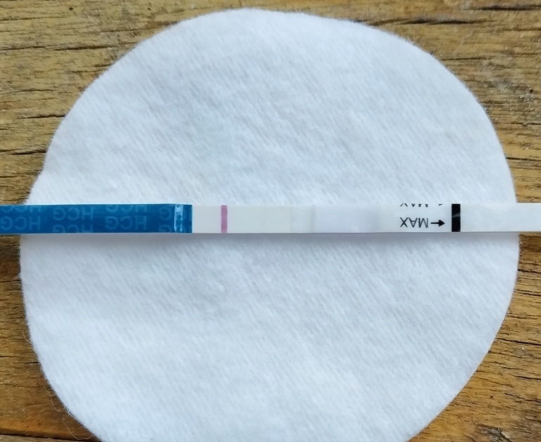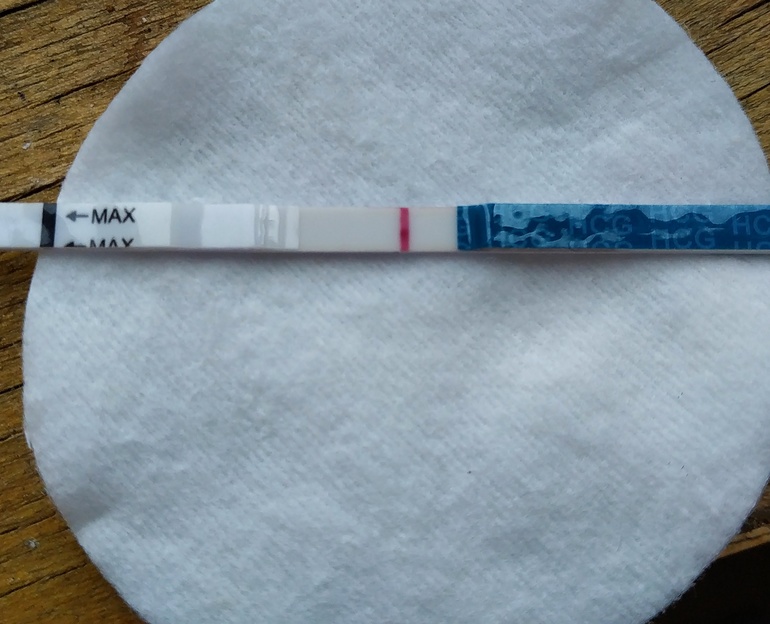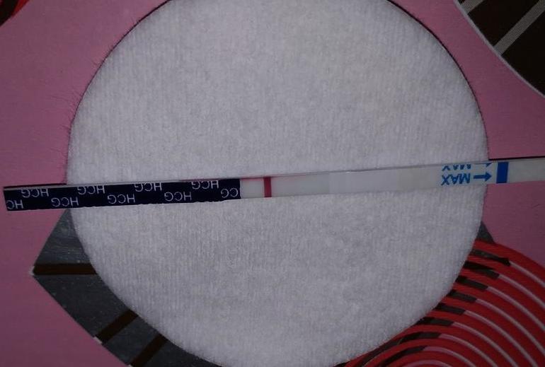 На фото реагент, это тест такой, полоска должна быть четкой, не размытой! Даже если еле еле видна! Мой тест за 4 дня до М