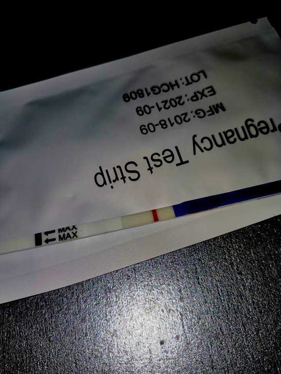 на реагент смахивает. странная полоска. переделайте другой фирмы тестом. Удачи)