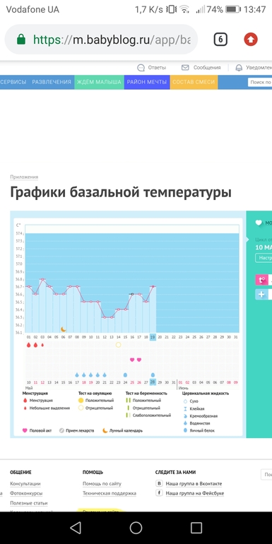 Анастасия в Зачатие 7 лет Бт Базальная температура, ТТ, графики БТ Посмотрите график БТ, есть ли шанс что получилось заб? Посмотрите еще 20 записей на эту тему Отменить Ответить Бт 36,8 БТ Чаты Беременных Выберите чат: Январята-2026 Февралята-2026 Мартята-2026 Апрелята-2026 Майчата-2026 Июнята-2026 Июлята-2026 Августята-2026