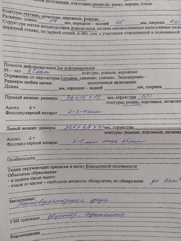 Анализы чистые были и на инфекции и кровь -все хорошо. Но анализы сдавала уже после того, как колола иммунные и магний. Плюс свечи Вольтарен и тампоны с левомиколем. .потом еще на днем стационаре какие-то уколы невнятнве типа от молочницы.. И магниты. Плюс два месяца ок . Такое было лечение.новое УЗИ только после 6 июня. А это старое. Мне интересно про размеры матки и яичников, настолько матка мала? Или все же это нормально? Яичников по соотношению к фазе цикла сильно ли увеличены.