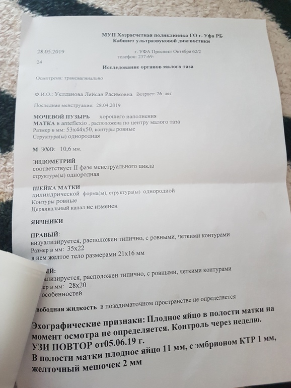 Не определяется это узи недельный (от 28 числа ) давности где мне сказали не определяеться. Второе заключение сегоднешнее