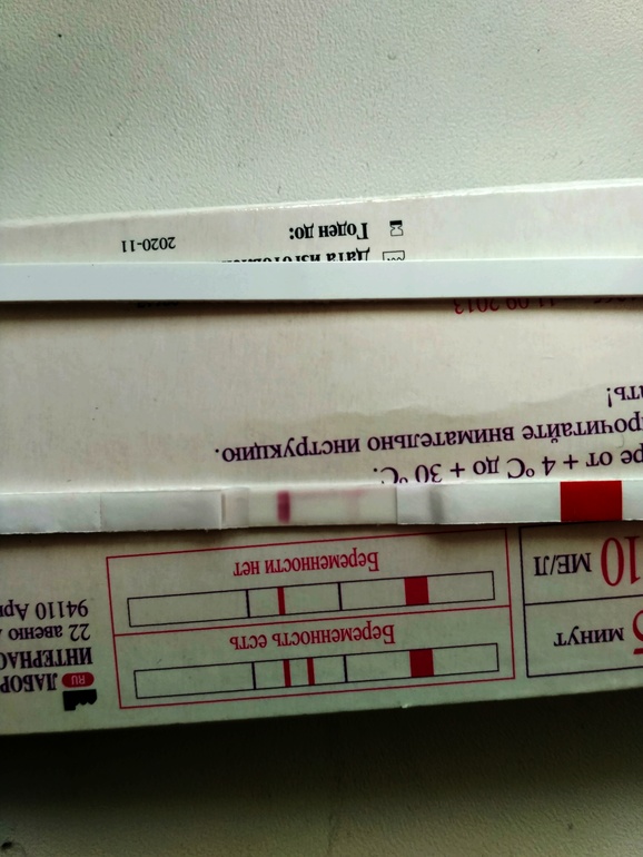 На фото конечно //, но я теперь предпочитаю полоски перепроверять...слишком много реагентов видела...