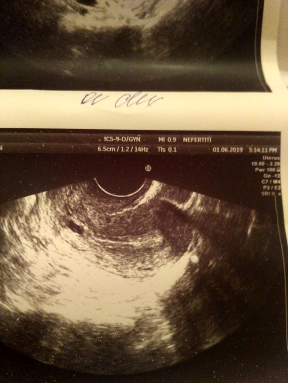 Вам на хгч, смотреть динамику. И лучше через недели 2 сходить еще на узи. Узнать какой в вашем городе лучший специалист (такие обычно нет-нет, но в любом городе имеются) и сразу записаться (обычно к таким запись как раз за 2 недели или огромные очереди). Если вдруг (чего я совсем не желаю) пройдут месячные, обязательно после этого сходить на узи и посмотреть есть включение в матке или нет, чтобы исключить полип или миому. Но опять же, по картине на сегодняшний день это не они.