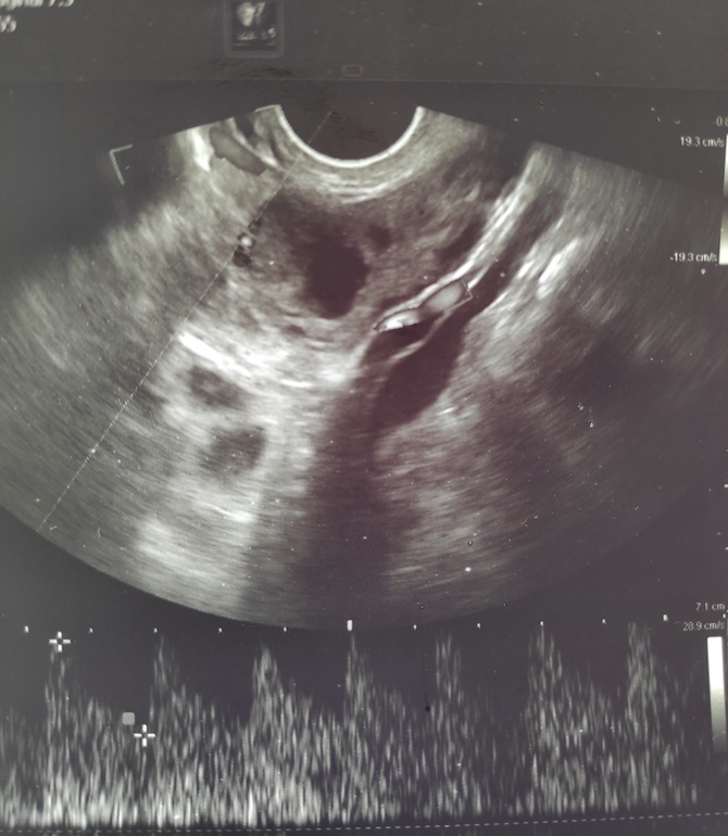 И жидкость есть. Но жёлтое тело только образуется. На данный момент в заключении написали: неоднородное анаэхогенное включение с неровным толстым контуром 15*11.