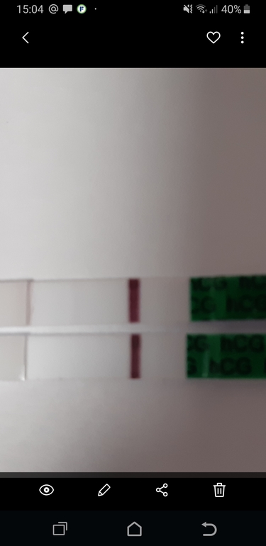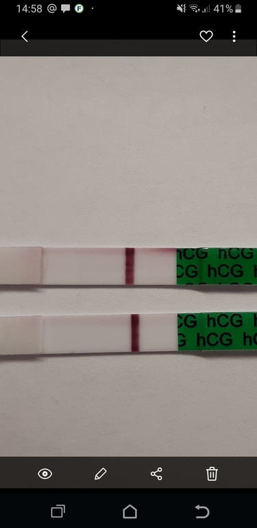 Ну вот у меня 9 дпо примерно , живот чуть тянет , вот результат 2 тестов сделанных на одну "жидкость "( тесты одинаковые кстати ) на одном 2 полоски ( верхний, нижний отрицательный 🤦♀️🤷♀️).