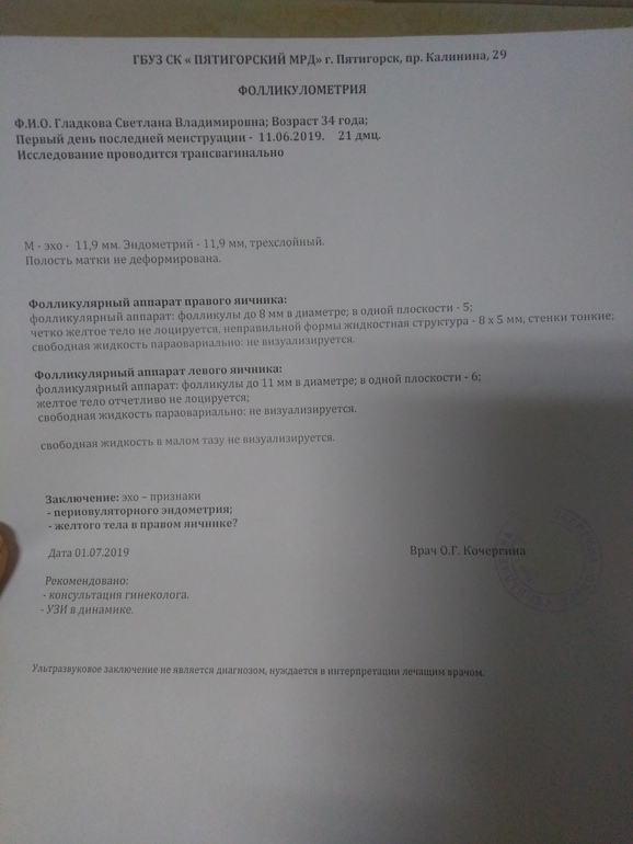 ФолликулометрияДевочки, пошла второй раз на фолликулометрию. Короче узистка меня жмакала, надавливала, вертела на том датчике и в итоге сказала, что чётких контуров у пятна, которое похоже на жёлтое тело - нет. Но такое бывает. Зато эндометрий роскошный, всё могло получиться, ждёт она меня с Б.