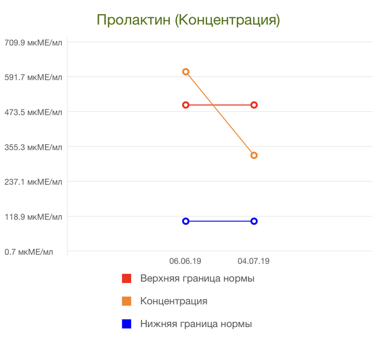 У вас был завышен пролактин, а вы все равно сдали опять просто пролактин, сдавайте всегда все фракции( мономерный и макро), чтоб не стать жертвой высокого Пролактина по вине макро, что не имеет клинического значения. Клиническое значение имеет только повышение мономерного Пролактина.