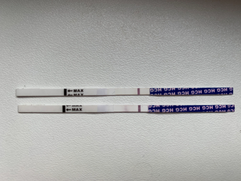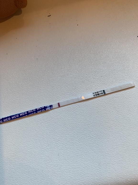 Просто второй пустой был и позже только получилось как видите. И почему то резко четкая. Как будто реагент растёкся и пропитала полоску. А на первом видно разве? Тоже на реагент смахивает.