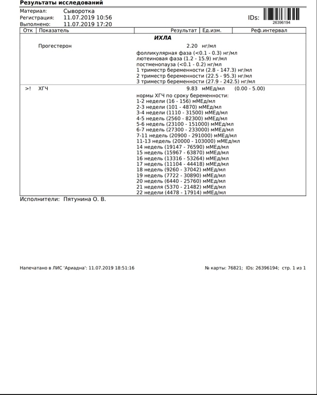 Прогестерон у вас ну очень низкий, даже просто для лютеиновой фазы. Либо нужна поддержка, либо он уже упал к М(