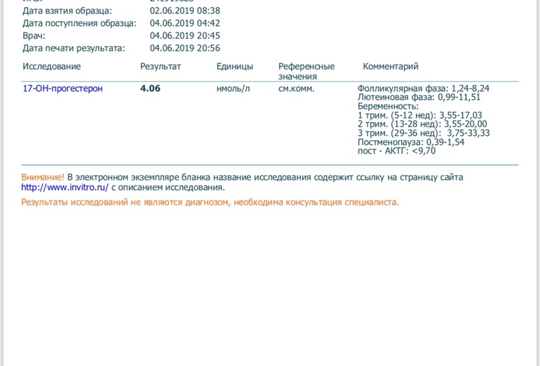 Я вижу у вас 17 он прогестерон, а обычный прогестерон вы не сдавали? Это ведь два разных гормона, 17 он прогестерон сдается тоже на 3-5дц, а обычный прогестерон уже после точно подтверждения овуляции на 7дц