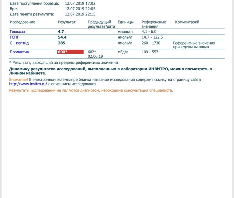Сказала сдать глюкозу ,с-пептид и пересдать поролактин и с результатами к ней,чтобы назначить таблетки от инсулина.В понедельник только иду к ней.