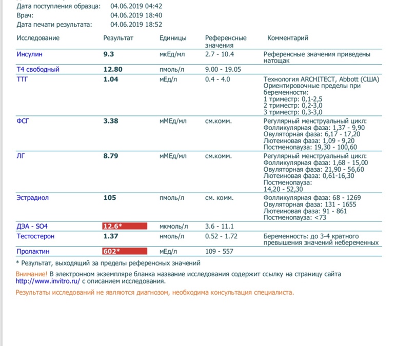 Она сказала ,что все нормально. Только инсулин высокий. Про пролактин сказала,что он незначительно повышен и это может просто я перенервничала .