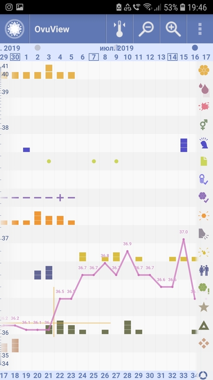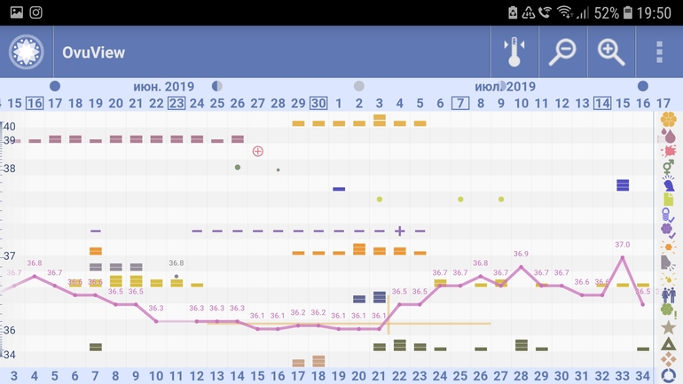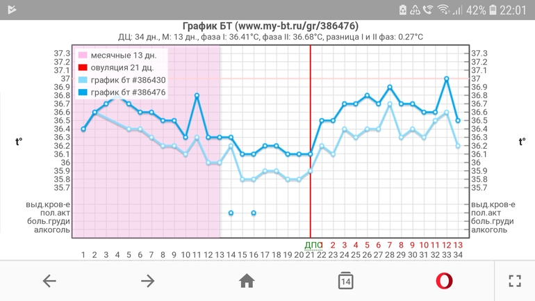 Я все равно нежно люблю сообщество графиков БТ и местное родное приложение. Они очень наглядны для меня, в отличие от графиков с других приложений, хотя овулю он стабильно выставляет на 1-2 дня позже. Кому-то везет и совпадает.