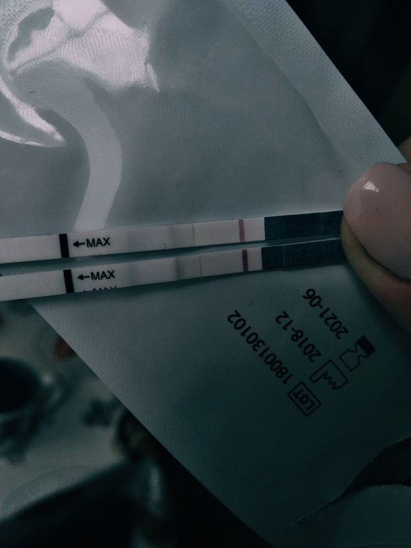 Верхний тест вчера вечер, нижний сегодня 8 утра. Утром слабее, а сейчас посмотрела, полоска вообще пропала что-ли ...