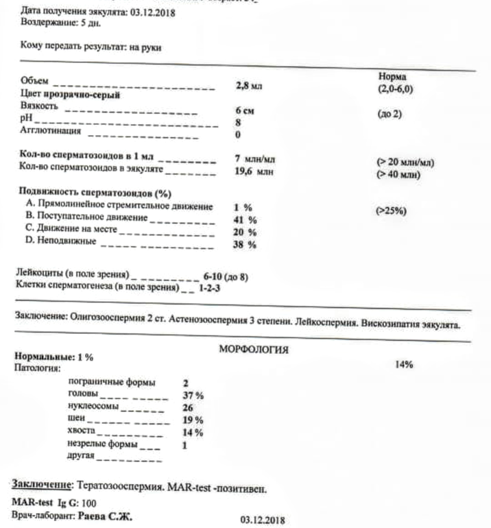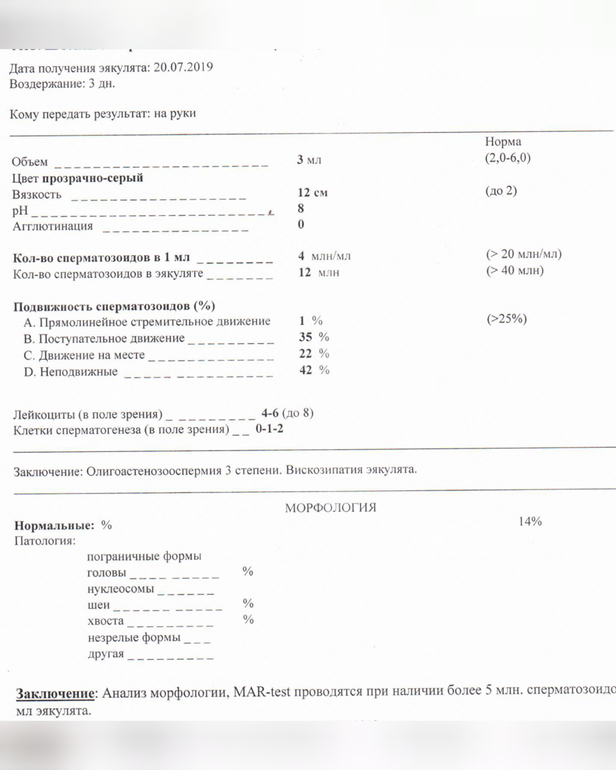 СГ нужно по Крюгеру сдать.У вас по ВОЗ,там более мягкие критерии.С такой морфологией,вы очень рискуете потерять время,принимая БАДы и вообще уронить ее до 0%.Вязкость лонгидазой мы убрали,к вашему списку Л-карнитин я бы добавила,если его нет в составе препаратов,которые вы намерены принимать.