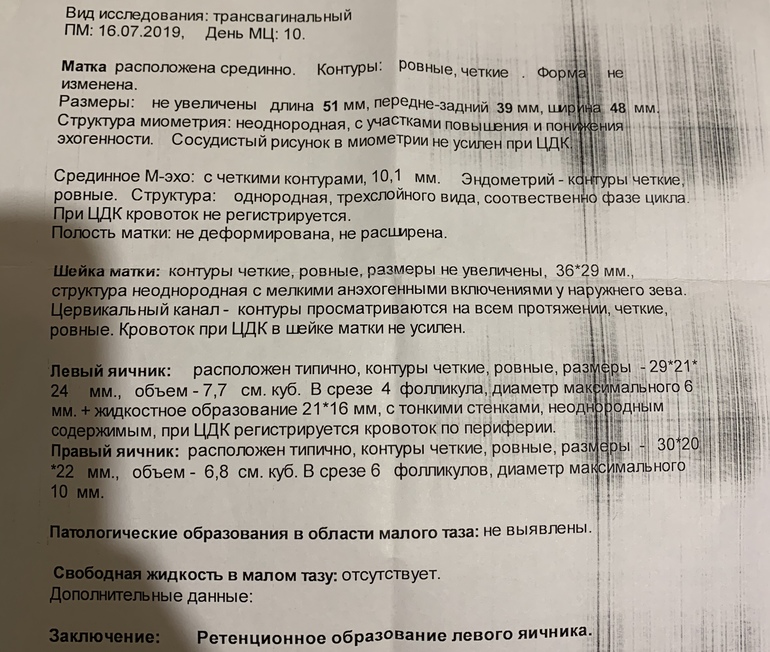 У вас возможно есть киста, в заключении написано. Надо наблюдать. Если не пройдёт, лечить.