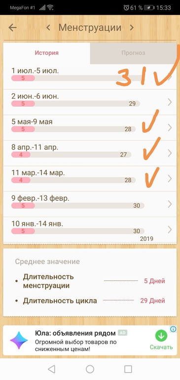 Ждем дня Х (Признаки беременности / Тесты)Дело в том что вчера был 30 дц на тесте полоски нет, соответственно облом. Но в этом цикле была стимуляция клостилбегитом и укол на 15 дц, овуляцию словила на следующий день ближе к ночи, после ПА через несколько минут начал сильно живот тянуть как перед месячными (обычно так овуляцию чувствую) на 18 дц ходила на УЗИ чтобы точно подтвердить овуляцию, овуляцию подтвердили. С этого же дня начала пить дюфастон. Пила до 27 дц включительно. Месячных пока нет. На графике галочкой специально отметила циклы когда я пила дюфастон, но там я пила с 16-25 дц, и месячные приходили можно сказать через 3 дня. Сделала тест вчера, чтобы понять продолжить ли пить Дюфастон или нет. Но т.к. тест ничего не выдал значит и не надо. Но у меня в том месте где была овуляция, с той недели покалывания слева. Тянет поясницу и другие симптомы. Вот интересно по моему графику циклов, может рано для полосок?! Или уже не стоит их ждать. Тесты у многих молчат, а кровь на хгч указывает на беременность. Кровь уж не стала сдавать если тест пустой, а может и надо🤔 И переживаю что скоро будет неделя как отменила дюфастон, а вдруг и получилось (мало ли, помечтать всегда можно🙈) и нужна поддержка дюфастоном. Знаю что после отмены дюфастона и через 10 дней могут прийти месячные, но я отталкиваюсь от тех дней когда сама принимала дюфастон и через сколько дней у меня приходили месячные.