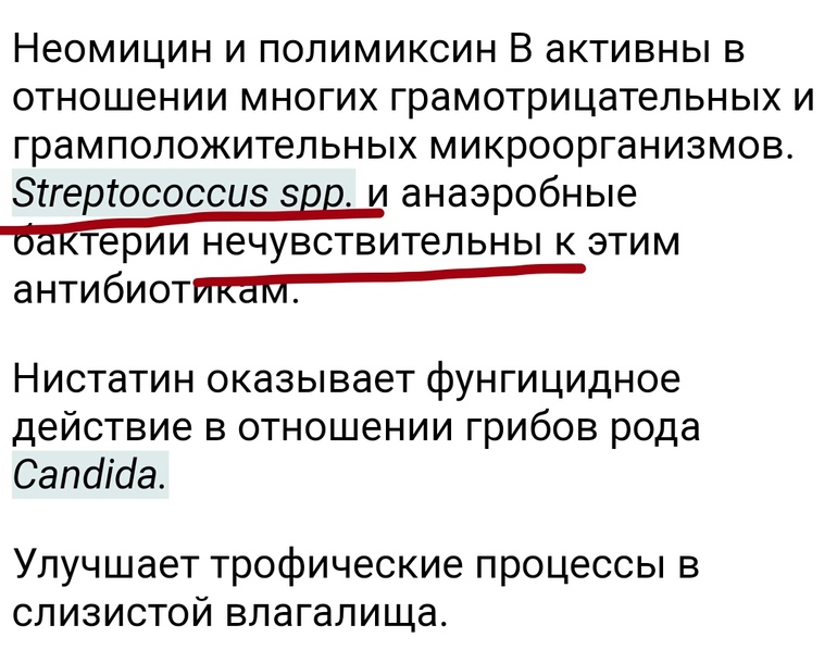 Забыла написать. Что стрептококк у меня вылазит уже лет 5 как планирую беременность. Никак не могу от него избавиться. Вот щас опять вылез какого-то хрена(( а Полижинакс не активен против стрептококка, вот и удивительно зачем мне его назначили.