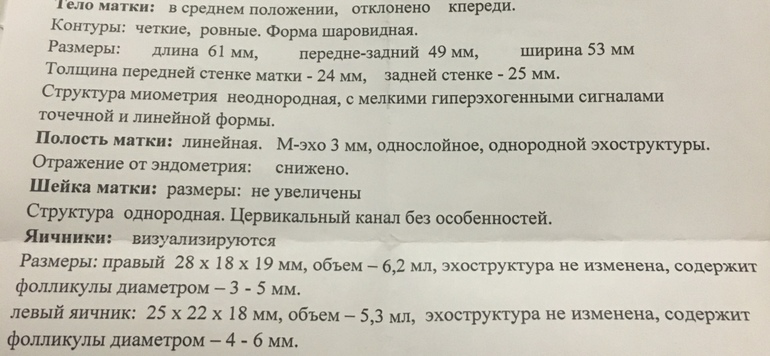 ФолликулометрияКто понимает посмотрите пожалуйста результаты узи!!!!!Я его делала за 1 день до начала месячных так как была задержка в три дня !!!! Скажите здесь всё как должно быть или есть отклонения ????