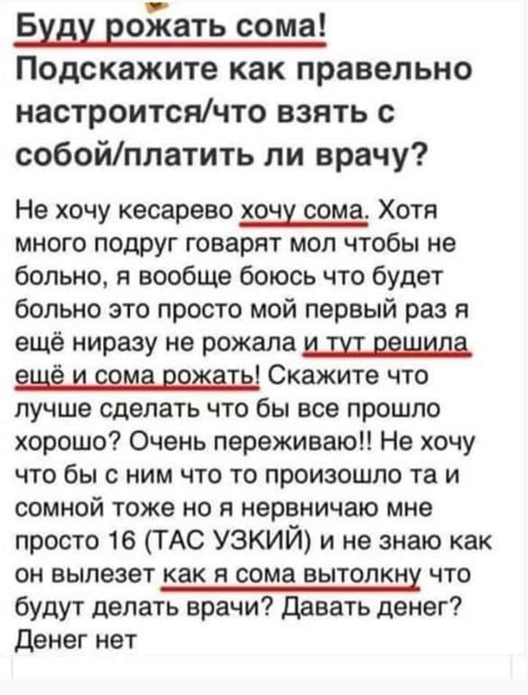 Я думаю сома именно рожать не больно будет, выскальзнет быстро😂😂😂
