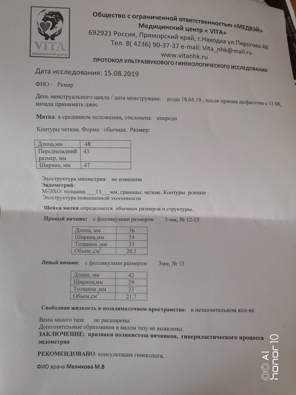 ФолликулометрияВообщем родила я 18 апреля этого года, месячных после этого не было три месяца, за это время эндометрий сильно вырос, вот 10 числа пошли, вызвали Дюфастон ом, с первого дня начала принимать Джес плюс, шли обычно, не сильно, 5 дней, сегодня тишина, сегодня была на УЗИ, эндометрий также толстый, она говорит что если в течение недели не пройдут сильно то будут высасывать(по другому выскабливать) но она сказала сделать ещё тест на всякий случай, говорит что УЗИ может и не увидеть,попробовала сделать, не на первую мочу, вроде ничего нет, вот прилагаю снимки и тест, остался ещё один, с мужем не предохраняемся, так как у меня поликистоз.