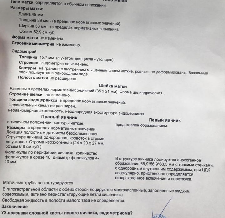 И вот в третью, задержка, тесты пустые, узи на 8 дз.. в одном яичнике киста снова под 4, в другом желтое тело, овул была но поздняя, т к прошли только одни месячные после родов (через 2 мес) врач сказала, «может овул собиралась, и переросла в кисту, хз, может поэтому и мес не начинаются, т к эндик 13, но раз у тебя есть желтое тело с кровотоком в другом яичнике, сдай ка хгч», сдала, 200.