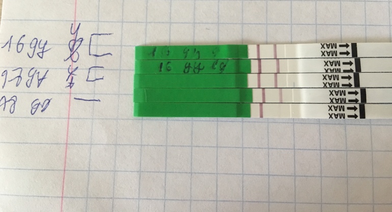 Овуляция( тесты на овуляцию)И так вот мои тесты) Секс был на 15 дц, перед этими яркими полосками. И вот на 18 день после ярких полосок. Каковы шансы? И получается овуляция уже наступила?