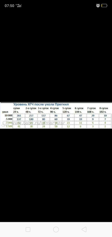 Прям на днях смотрела результата пациентки, укол 10 000 делали 29.07, ХГЧ от 14.08 был 32. Через день менее 0,1. Поэтому таблица выше весьма условная. Лучше сдайте кровь при наличии задержки.