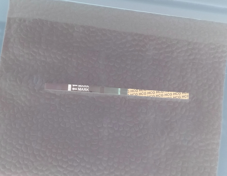 А вот панический страх появляется, да настолько, что решила купить тест (Frautest). На фотографиях вроде пусто, второй полоски нет. В жизни, осматривая под разным освещением и углами, вырисовываются очертания какой-то совсем-совсем бледной полосочки.