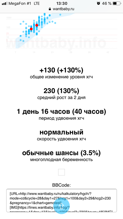 Врач сказала что если свыше 200 результат будет - это очень хорошо. Удвоение происходит в течении 2-3 дней. Нашла калькулятор роста хгч…