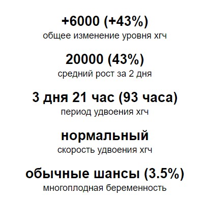 Хгч удваивает я буквально до 5-6 тысяч, дальше время удвоение увеличено успокойтесь!
