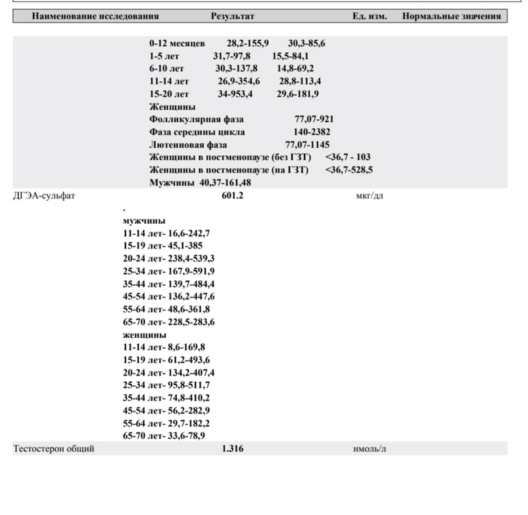 Давно хотела сдать гормоны, но у нас то не делают что то, то попасть не могу, а тут возвращались из Турции и вышел как раз 6 дц... Просто про ДГЭА начиталась, что он и опухоли может показывать и куча всего, а у меня он прям сильно повышен судя по нормам... Вот и думаю чем снижать? А по тестостерону вообще не вижу график норм, вот и не пойму в норме он или нет? Все гормоны кроме прогестерона нужно на 3-5 дц сдавать?