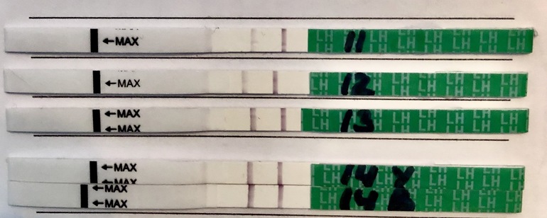 В прошлом цикле по тестам и ощущениям овуляция была на 14 день поздно вечером.