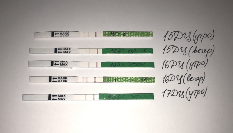 Овуляция( тесты на овуляцию)Девочки! Уже запуталась. Посмотрите, есть ли какая-то динамика? Сегодня 17ДЦ и я была уверена, что полоска станет супер яркой, а она почти такая же как и на 16ДЦ😔