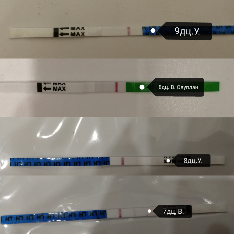 Овуляция( тесты на овуляцию)Ну маньячка ведь... Здравствуйте) С 7дц начала сходить с ума.. Тестомания такая тестомания.. Тесты на овуляцию "я родился" и всеми любимые "овуплан" Знаю что рано и бла бла бла и вообще желательно на УЗИ, но это не про меня 🤣Ловите коллаж с 7дц по сей день, те 9дц.P.s. Цикл в среднем 26 дней.. Что с полосками происходит? Что за бред?!