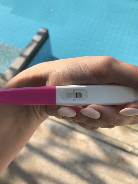 Прошёл ровно год, как начали планировать. Одна труба, поликистоз,сильная эрозия. В итоге персистирующий фолликул, прижигаете эрозии и месяца на кок. Так ждала когда уже можно будет пробовать! И вот первый цикл после отмены кок, пришла на узи и говорят а у вас не будет в этом цикле овуляции... я вся в расстройстве... прошло чуть больше 2 недель, месячных нет, 1 раз случайно сделали все туда не предохранялись.. даже не помню когда... и вот я на узи перед отпуском и мне говорят ой вы знаете у вас была овуляция справа( нужно слева) и месячные вот вот или вы Беременна, жт 28... слелайте через пару дней тест.. через 2 дня в день отъезда сдала хгч, результат 1.2 вы не Беременна (в инвитро). Мы на море уже 9 дней, мес нет. Купила тест .. а там вот что. Я в шоке! Никогда не пользовалась струйный тестом и боюсь верить