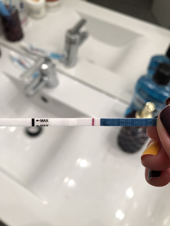 Один и тот же тест ещё мокрый. Полосочка появилась ещё пяти минут не прошло. Чувствительность теста 10.