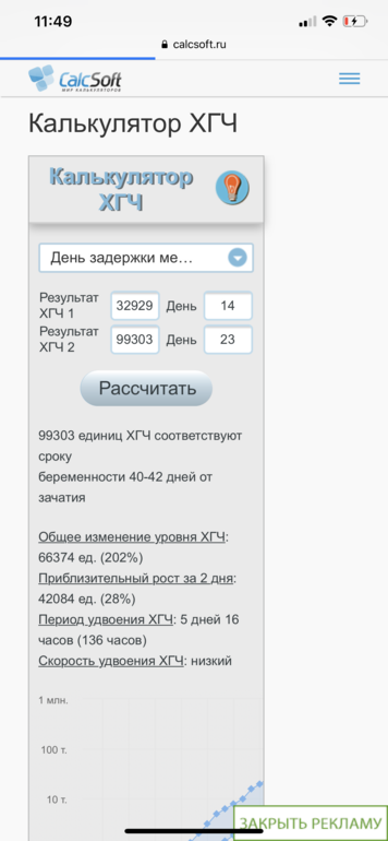 29 дпо 50046 (акушерские 6+3)и этот калькулятор тоже написал, что низкий прирост, хотя 3 дня (73 часа), а другой написал "прирост нормальный" .Думаю, что на таких значениях эта скорость нормальная.